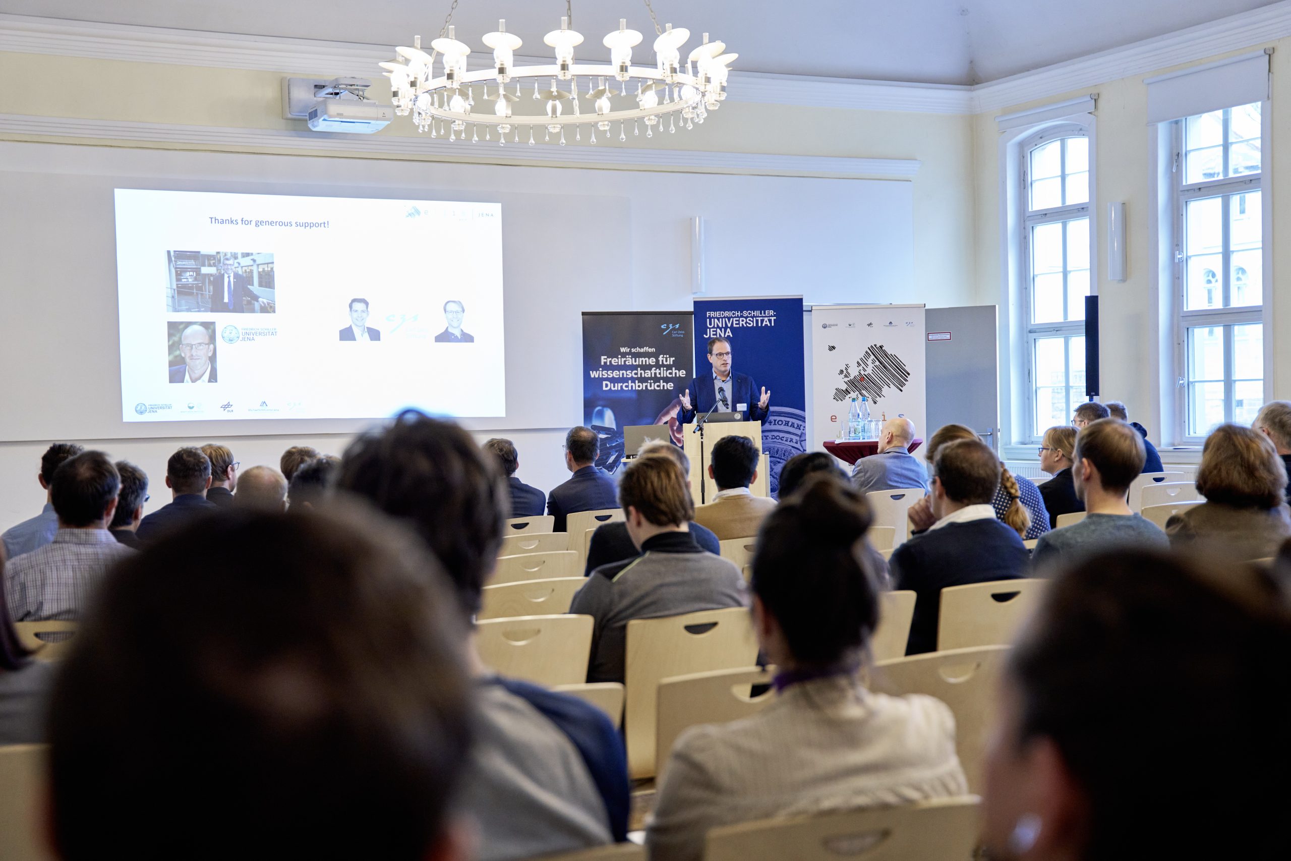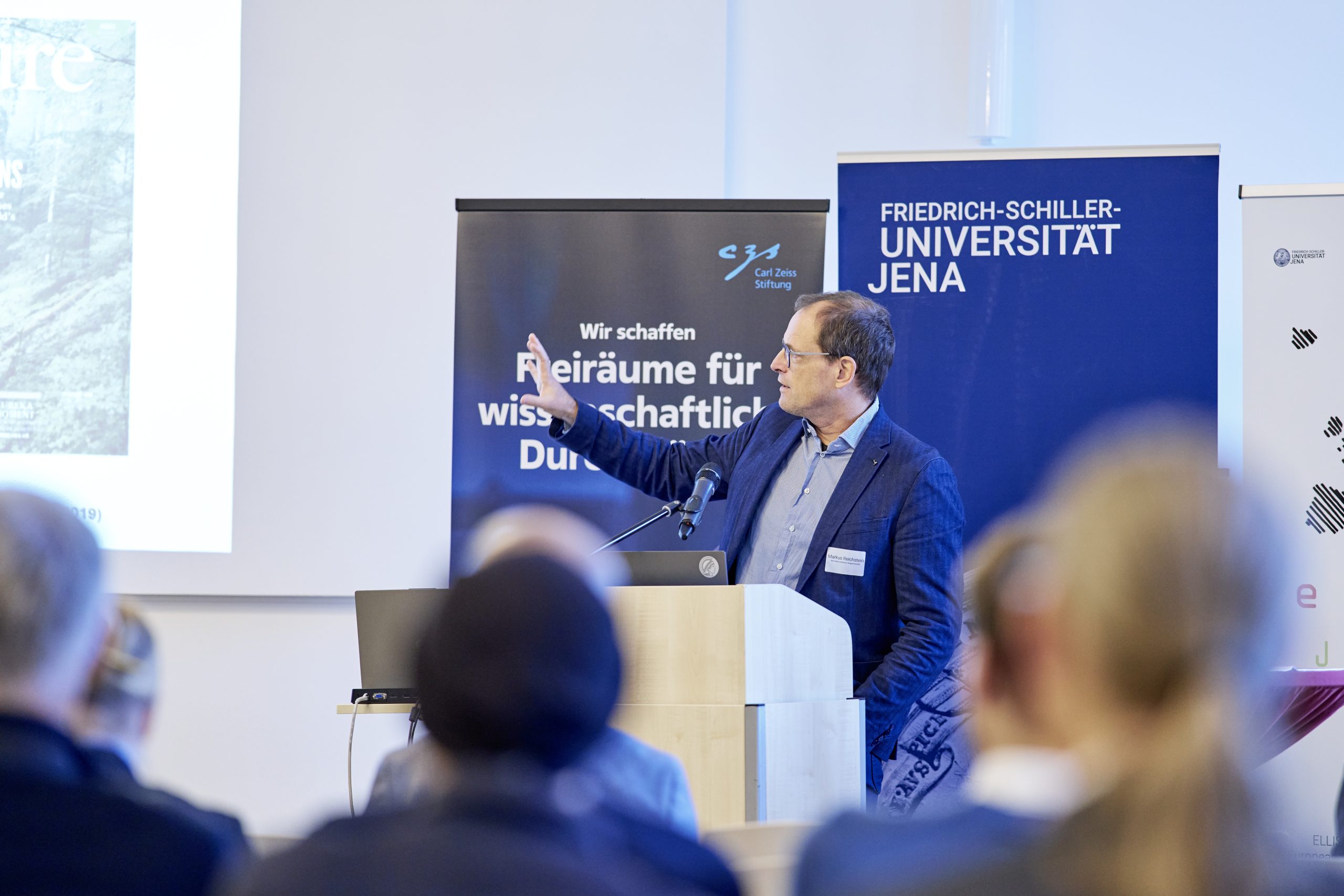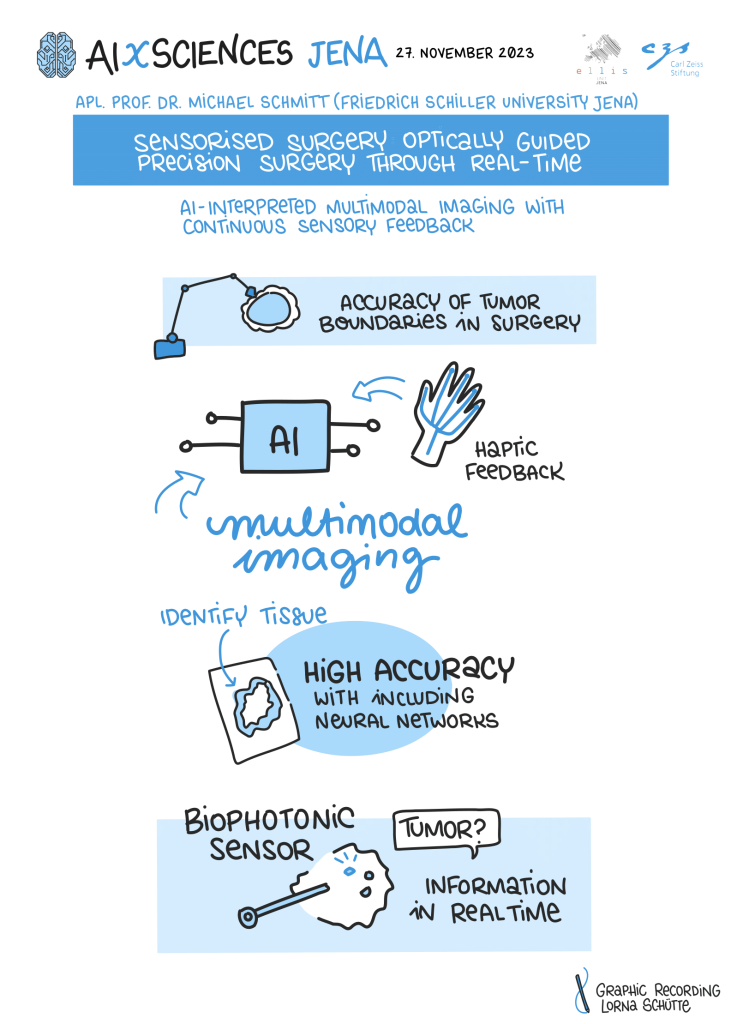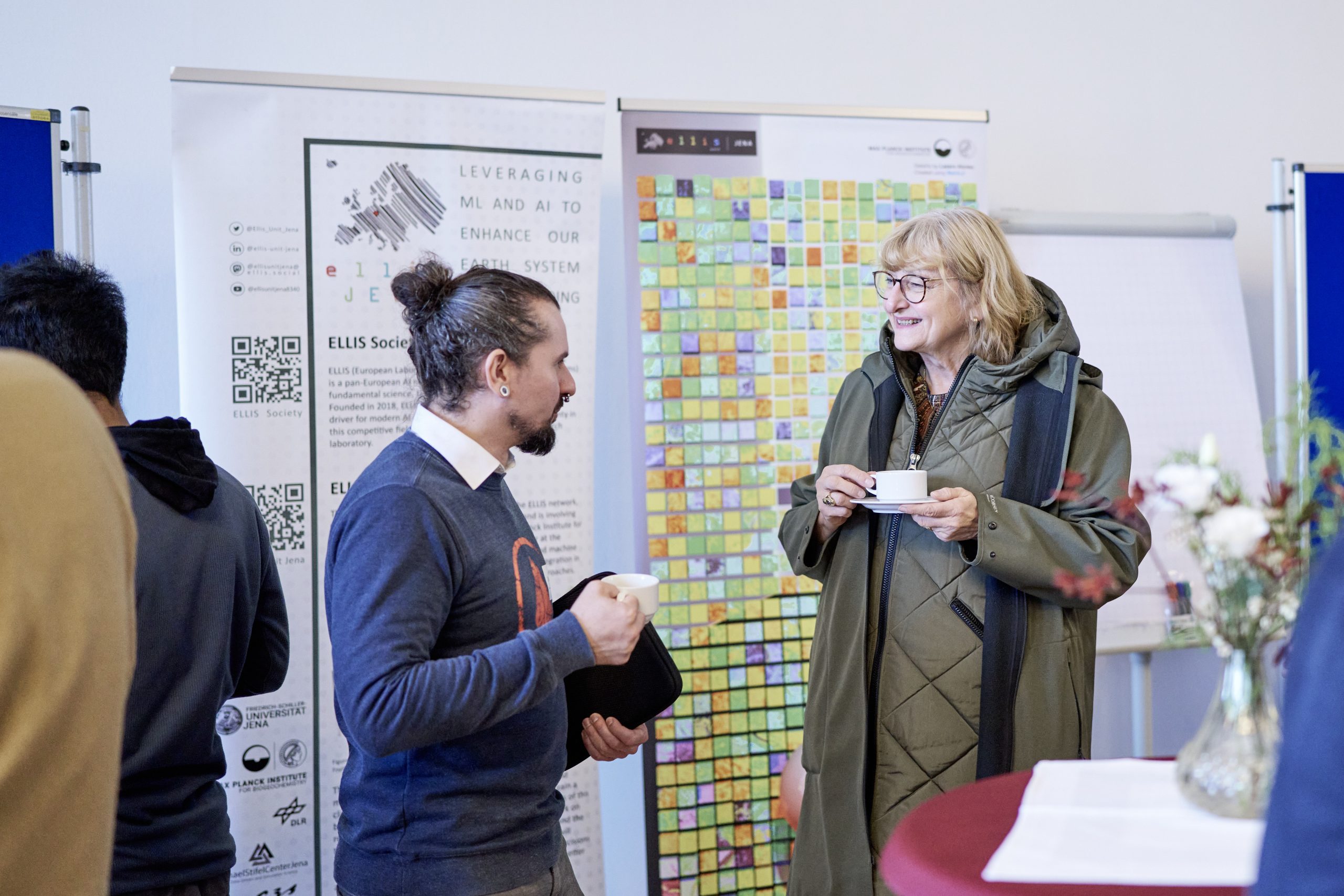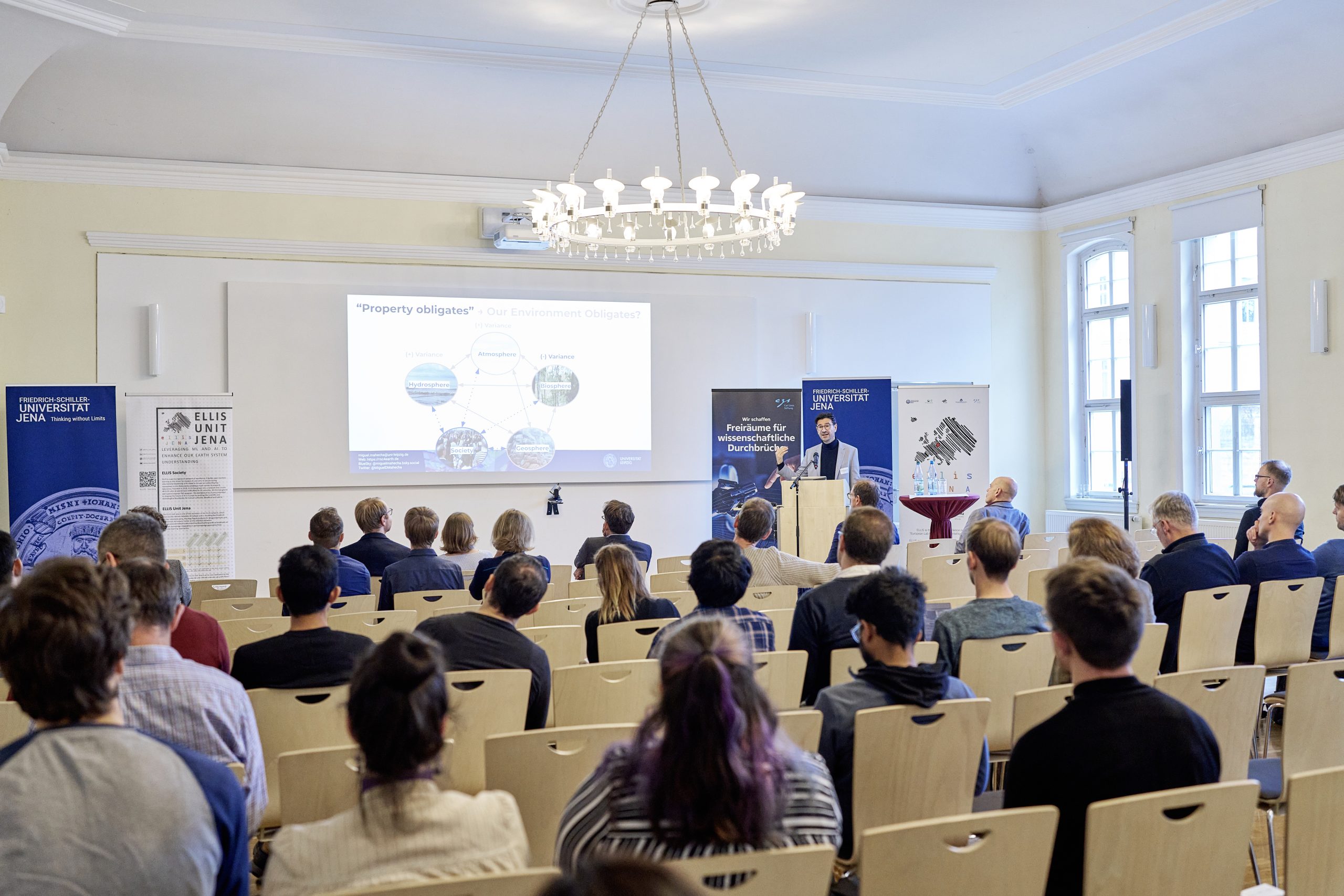 On November 27th, 2023, AI experts from various research projects in Jena gathered in the Rosensäle of Friedrich Schiller University Jena to exchange ideas on the topic of AI and present their developments and innovations. The event was organized by the ELLIS unit Jena in collaboration with the Carl Zeiss Foundation. Ranging from research in earth sciences to sensor-assisted surgery and smart communities, the projects showcased how AI could enhance daily lives and offered insights into the diverse research achievements in the field of AI in Jena.