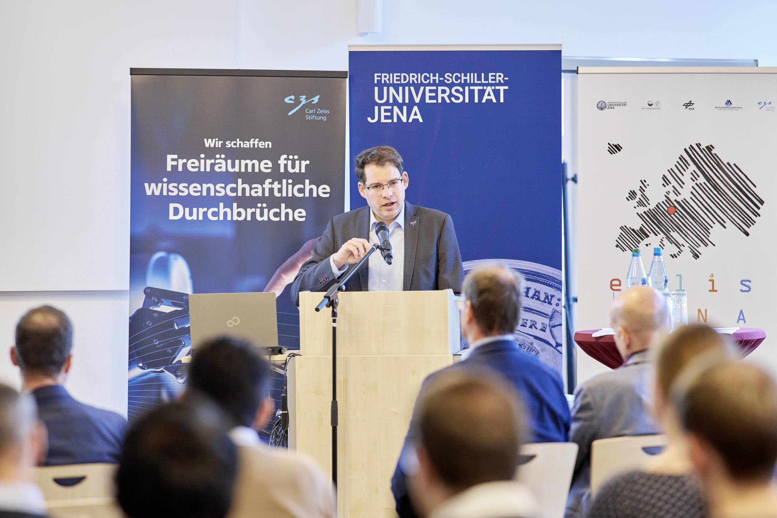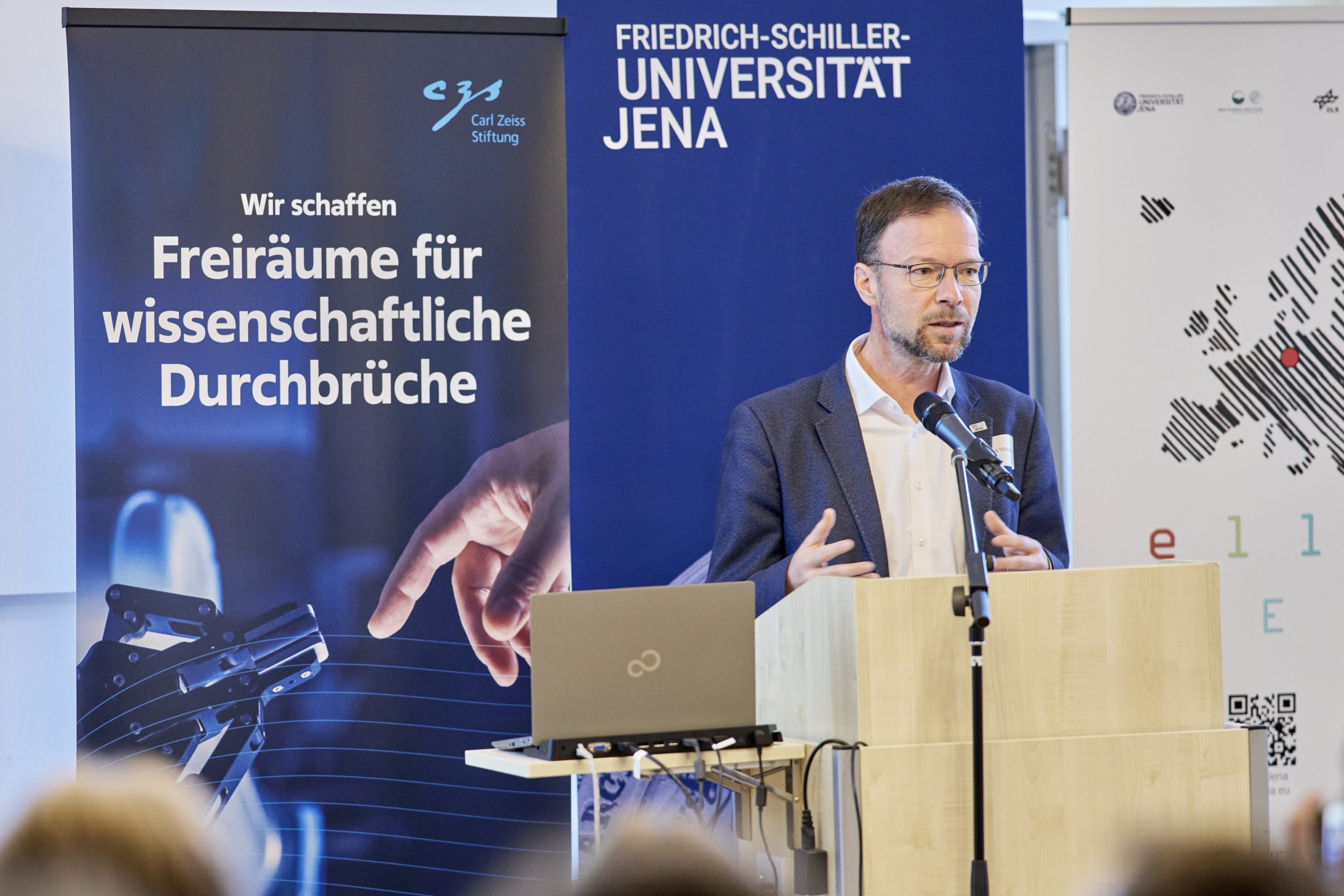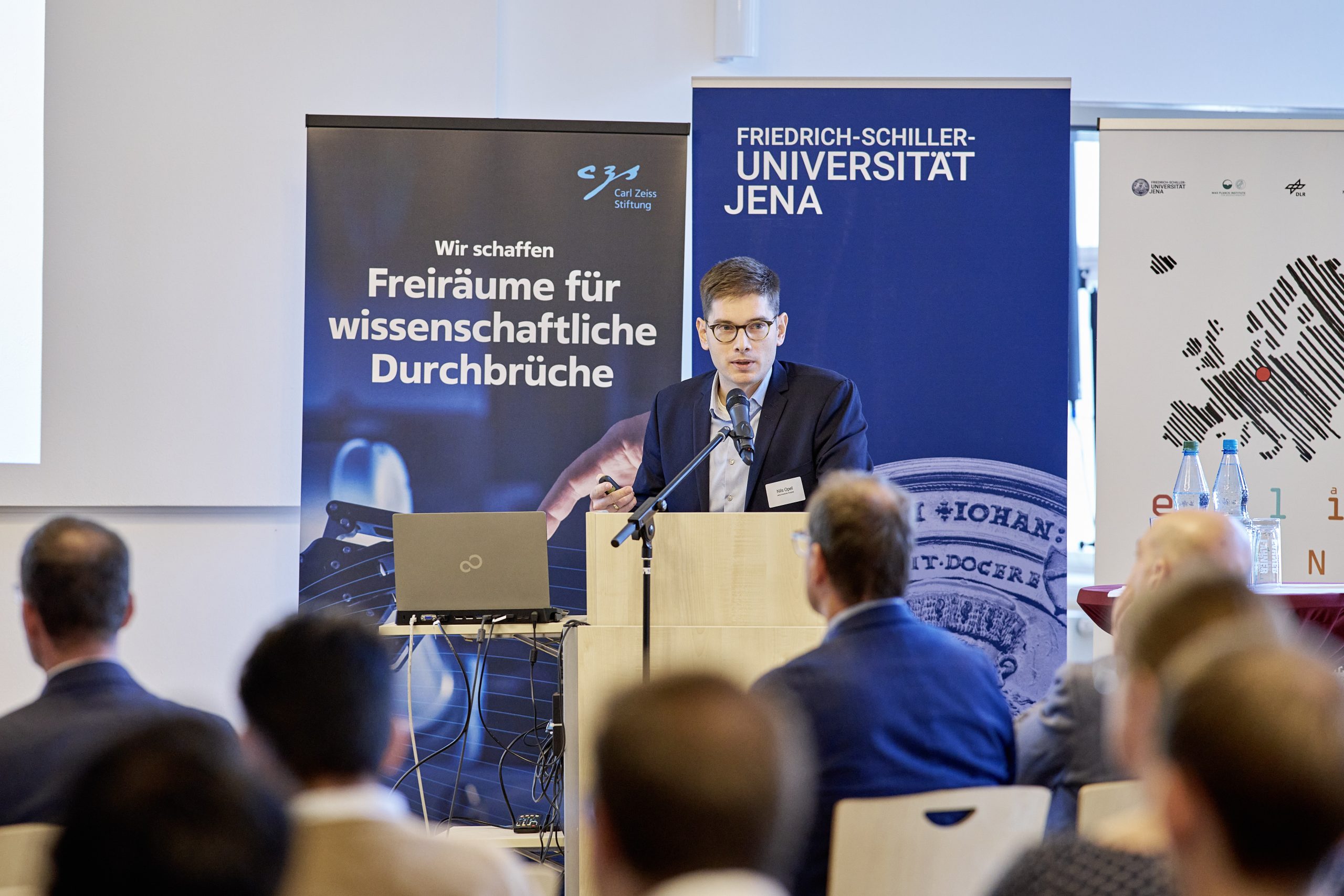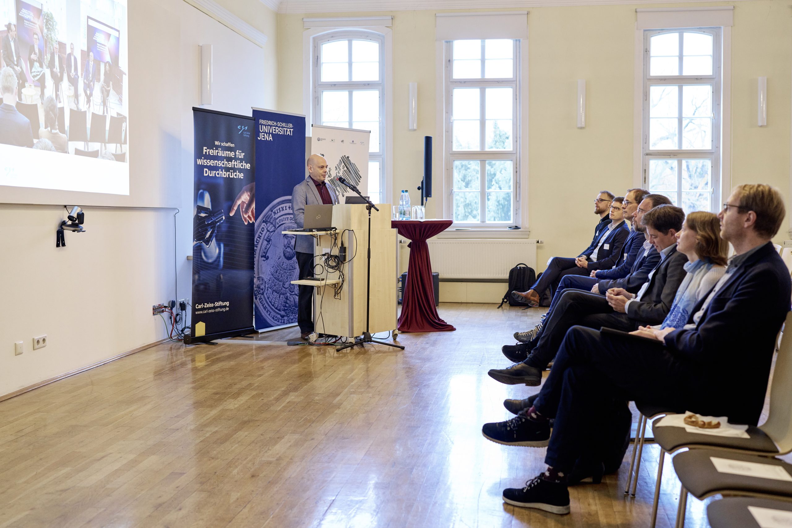 On November 27th, 2023, AI experts from various research projects in Jena gathered in the Rosensäle of Friedrich Schiller University Jena to exchange ideas on the topic of AI and present their developments and innovations. The event was organized by the ELLIS unit Jena in collaboration with the Carl Zeiss Foundation. Ranging from research in earth sciences to sensor-assisted surgery and smart communities, the projects showcased how AI could enhance daily lives and offered insights into the diverse research achievements in the field of AI in Jena.