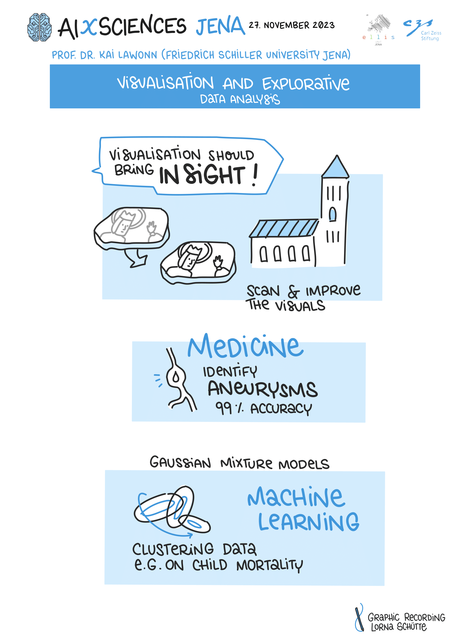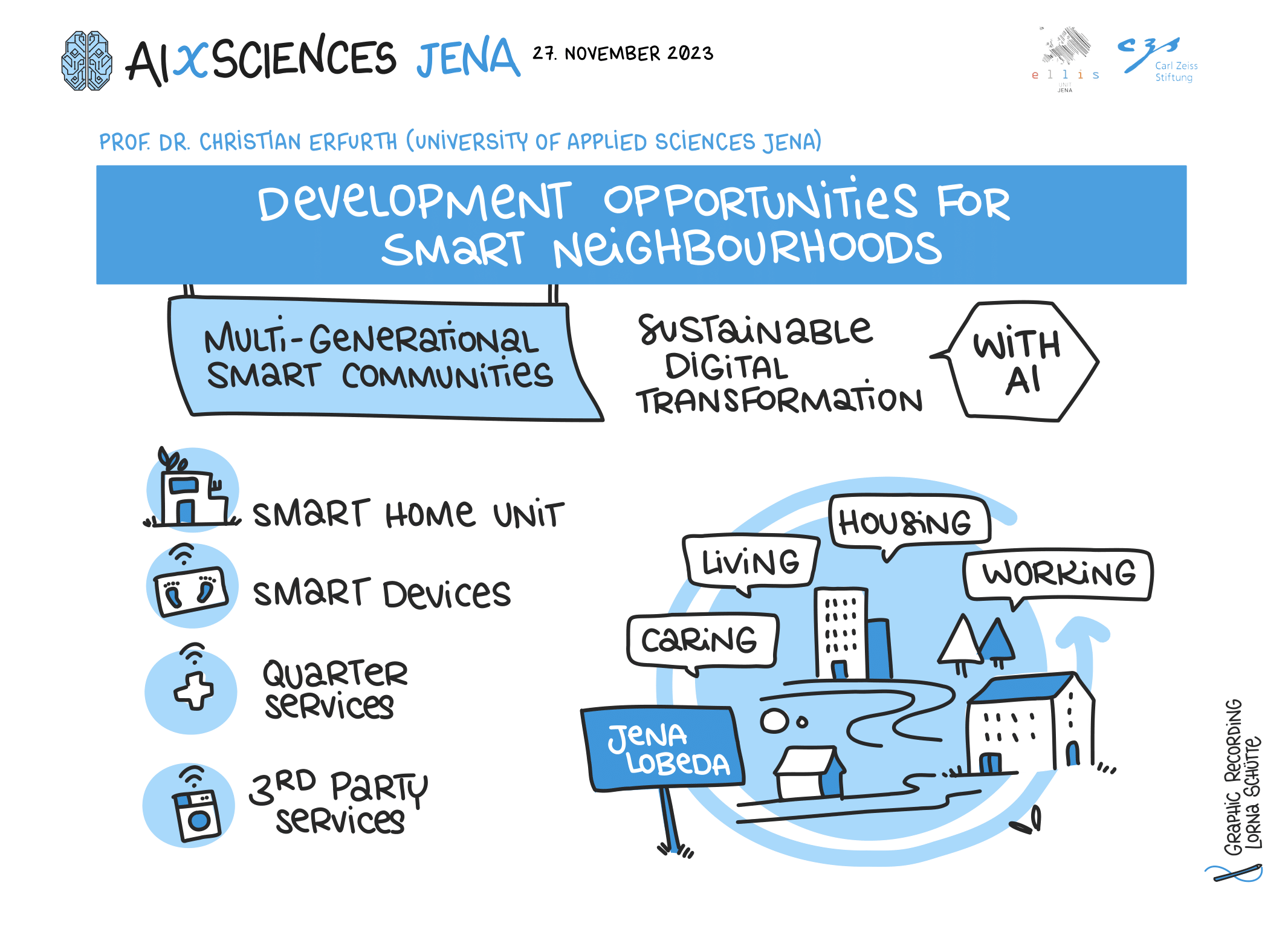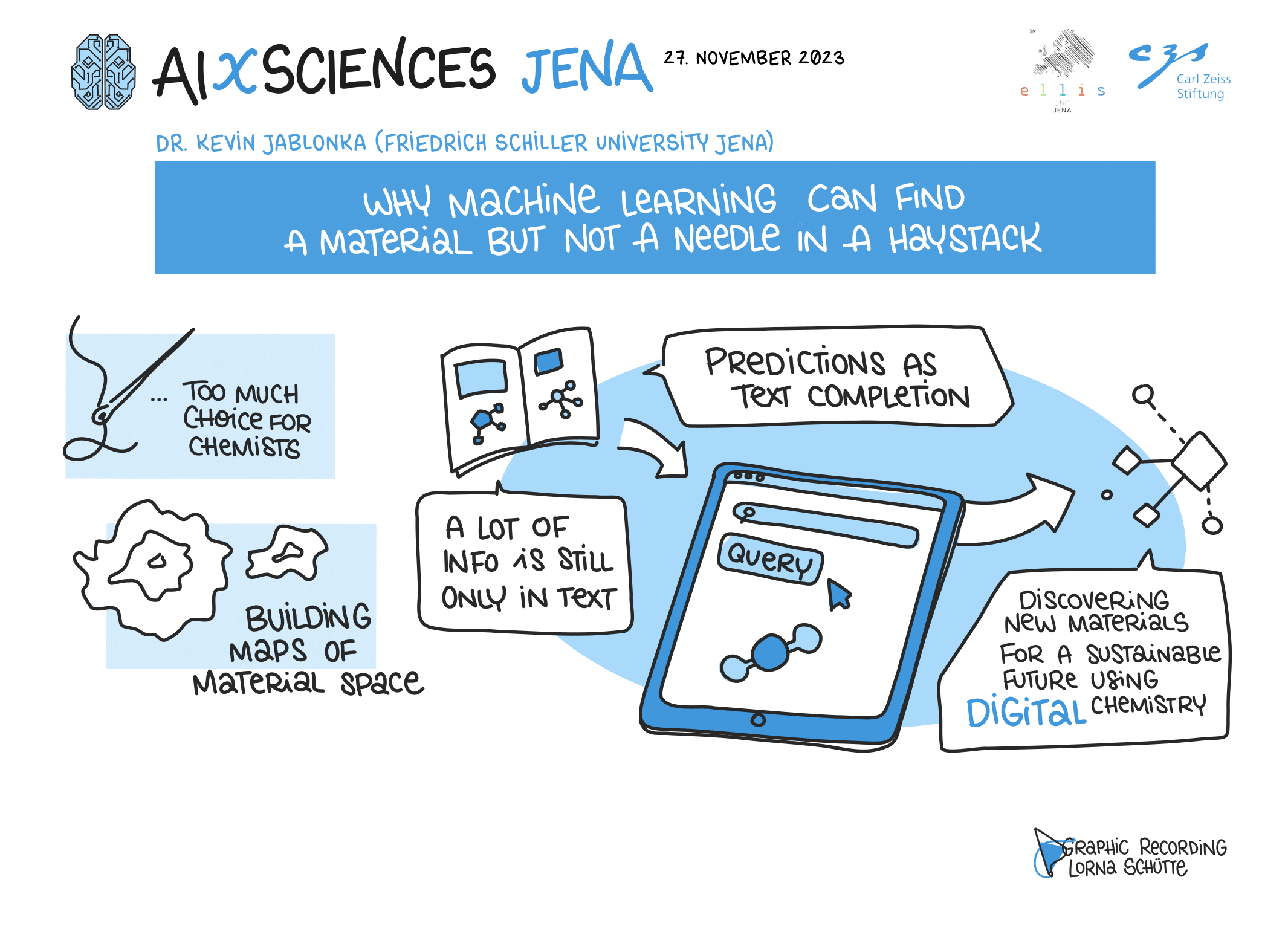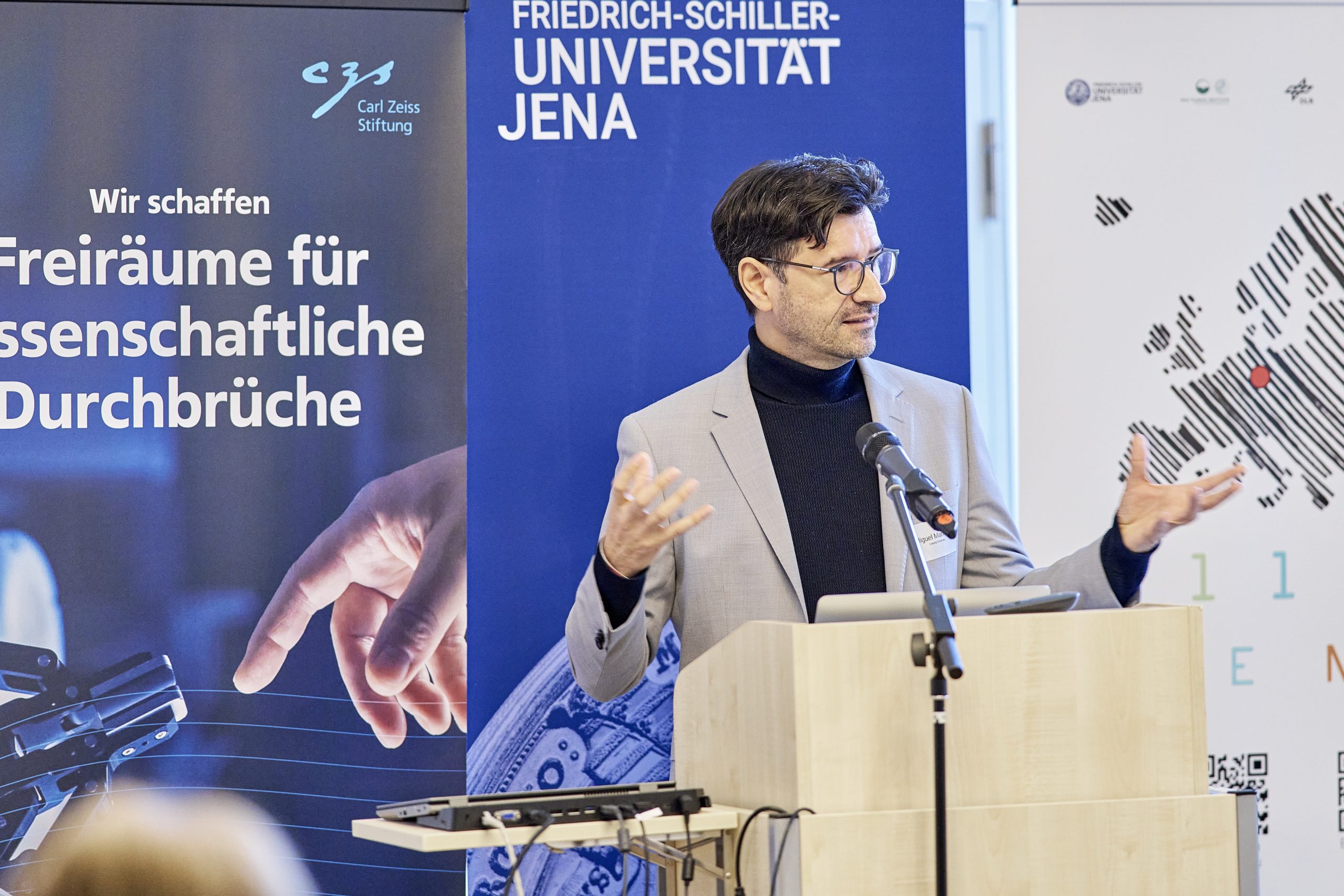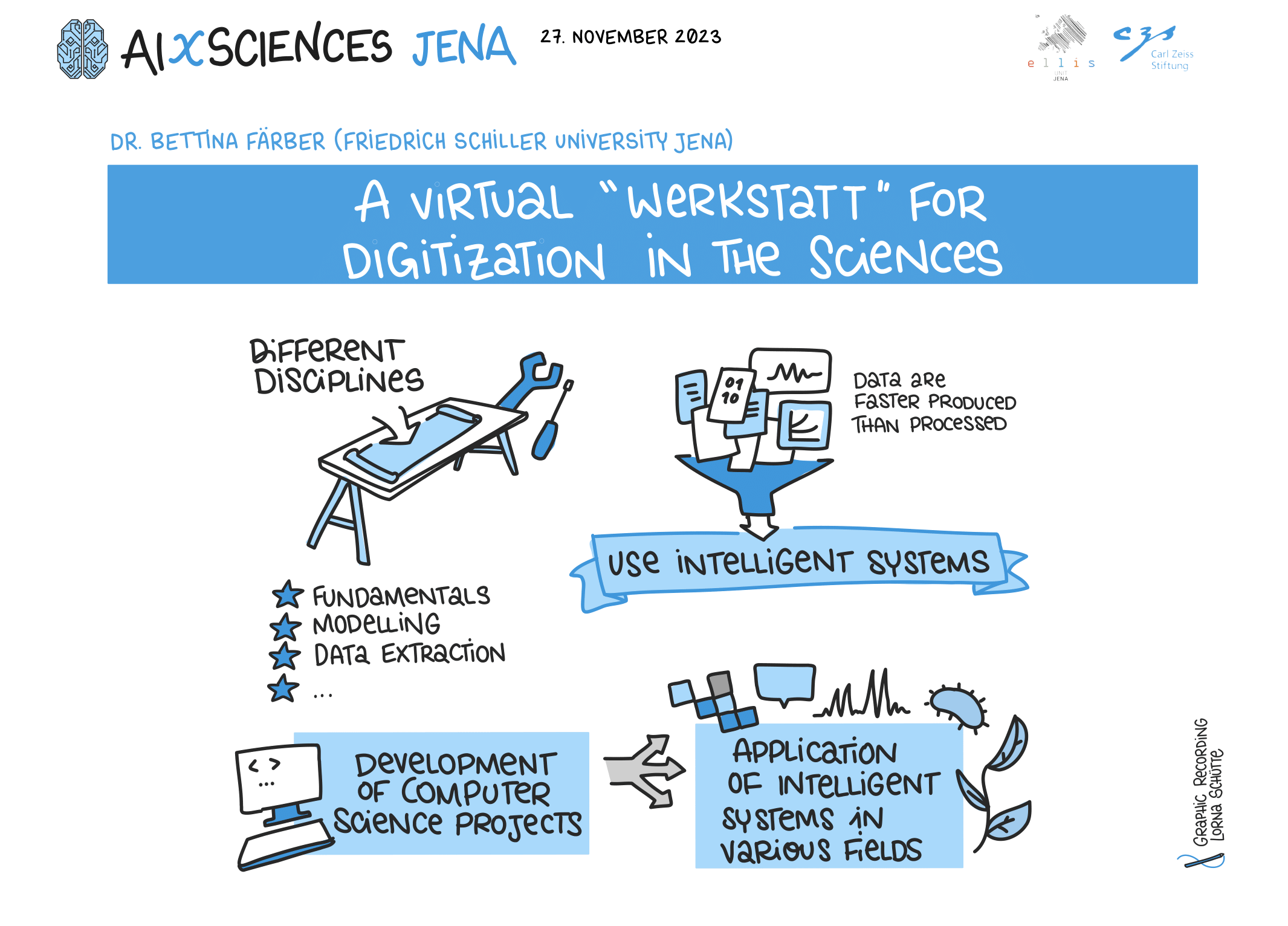 On November 27th, 2023, AI experts from various research projects in Jena gathered in the Rosensäle of Friedrich Schiller University Jena to exchange ideas on the topic of AI and present their developments and innovations. The event was organized by the ELLIS unit Jena in collaboration with the Carl Zeiss Foundation. Ranging from research in earth sciences to sensor-assisted surgery and smart communities, the projects showcased how AI could enhance daily lives and offered insights into the diverse research achievements in the field of AI in Jena.
