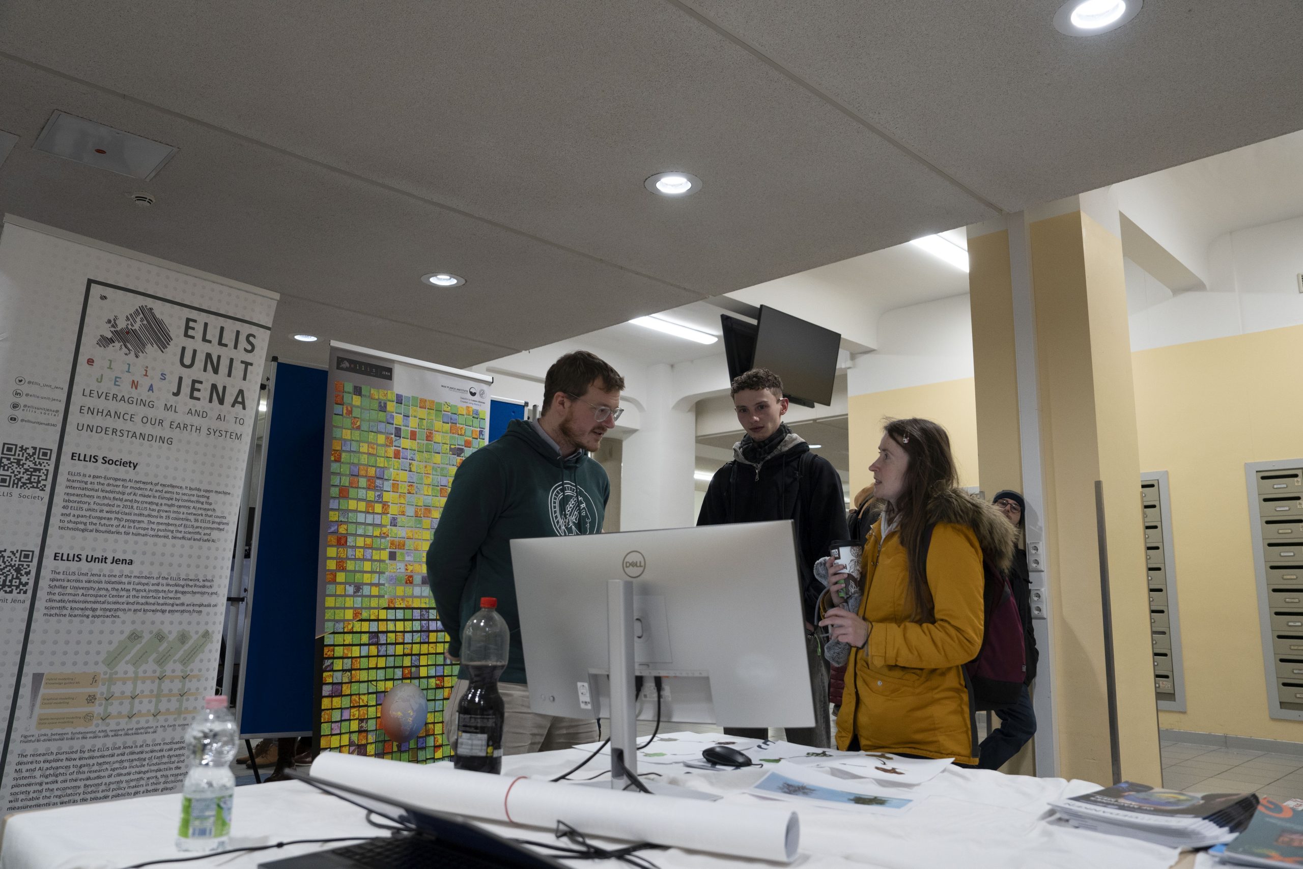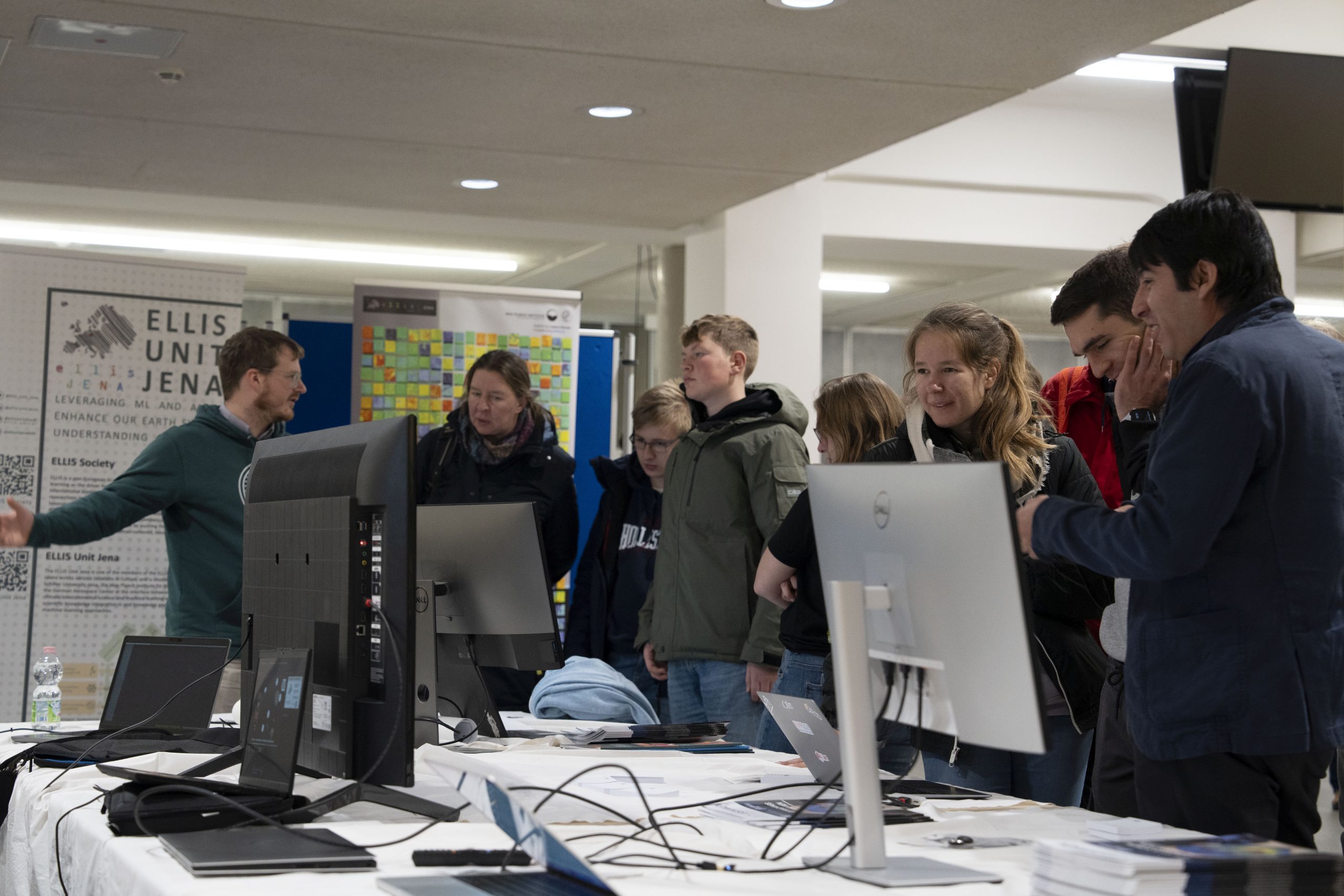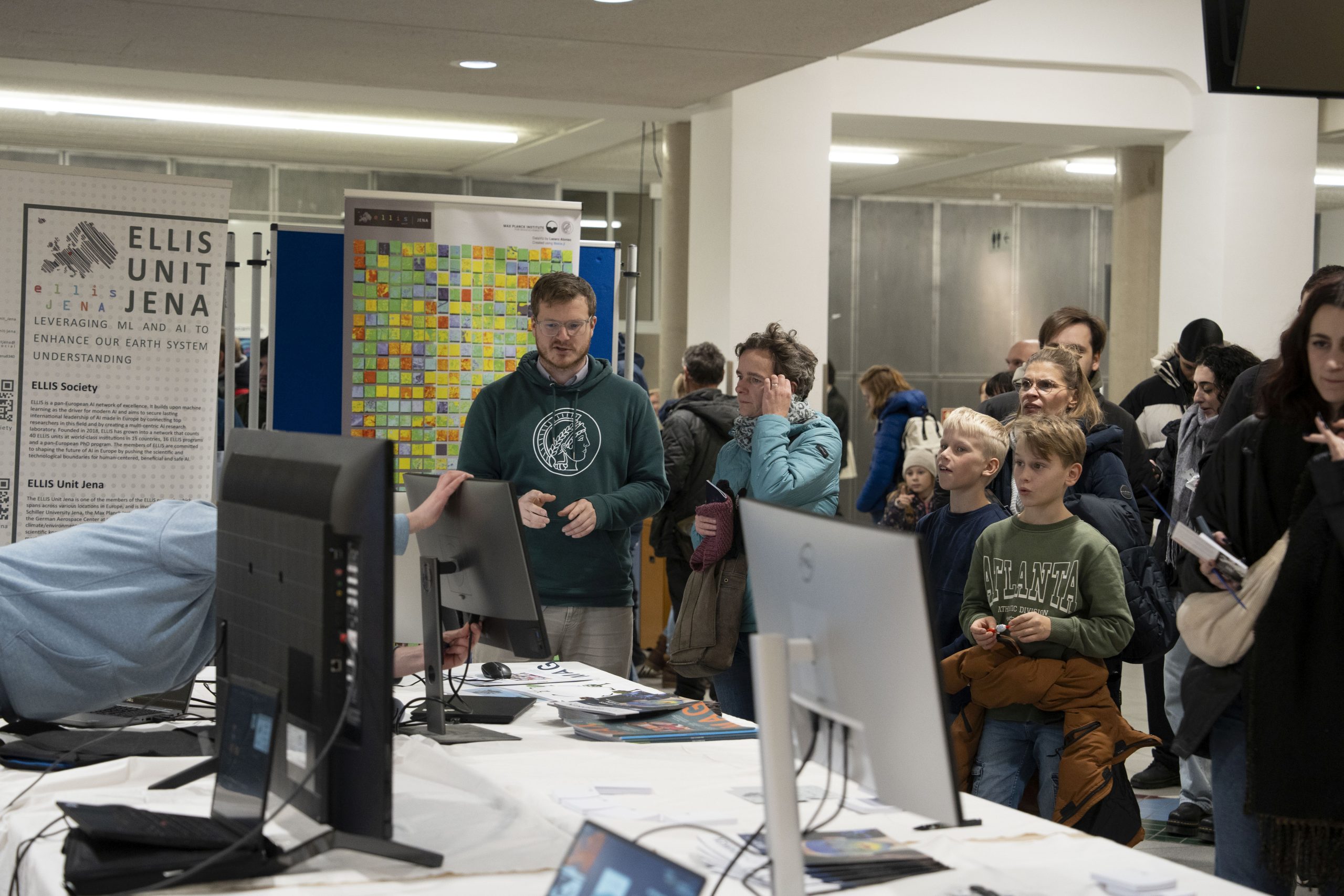 ELLIS Unit Jena participated in the 2024 edition with its own booth, showcasing the ELLIS Network and its collaborations with other key research initiatives. The team presented how Artificial Intelligence (AI) and Machine Learning (ML) are being used to understand climate change and develop solutions. Visitors explored how AI analyzes large datasets from satellite images and weather stations to predict extreme weather events and reduce CO2 emissions. The booth highlighted how AI is driving innovative approaches to protect the planet’s natural resources and promote sustainable energy solutions. Whether tech enthusiasts or curious minds, visitors discovered how AI and climate science are working together to preserve the planet for future generations, while also raising awareness of AI’s transformative potential in interdisciplinary research.