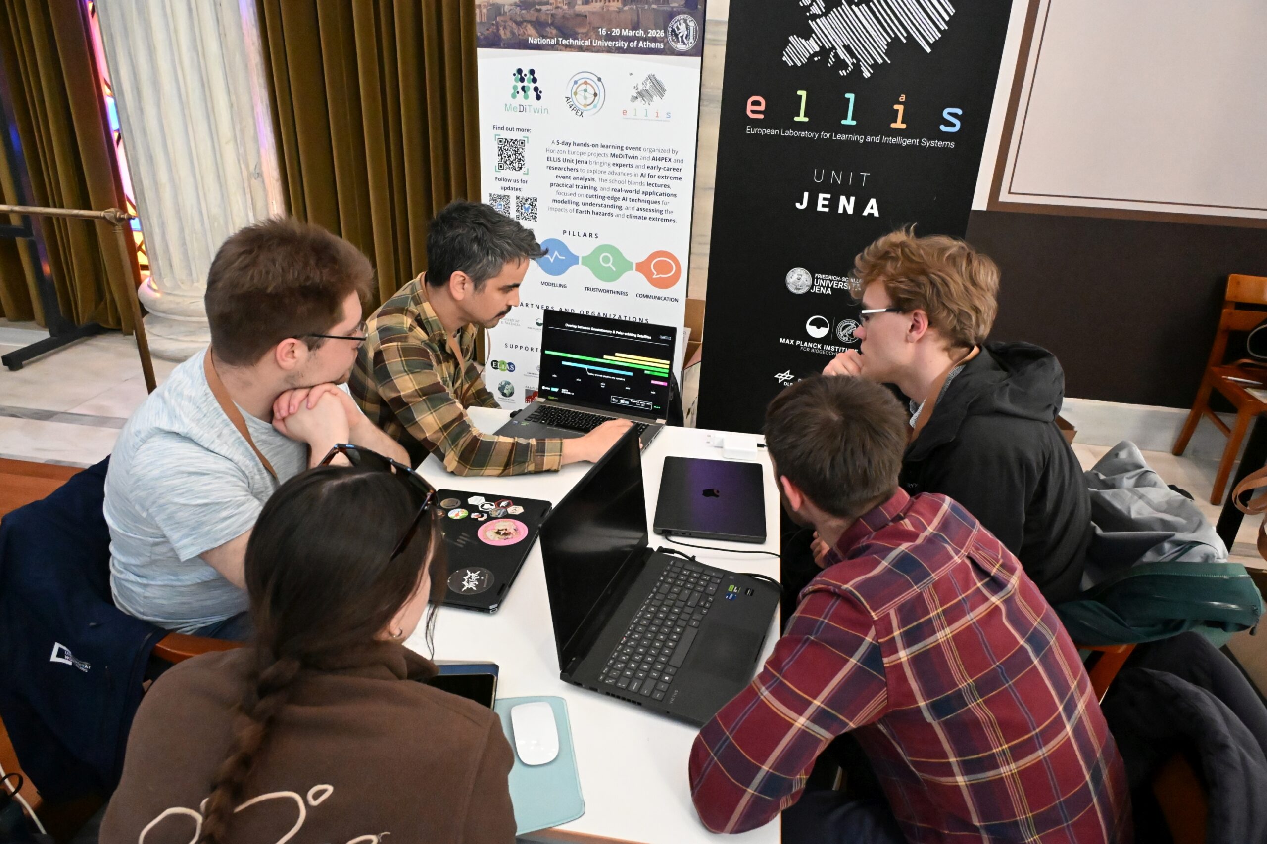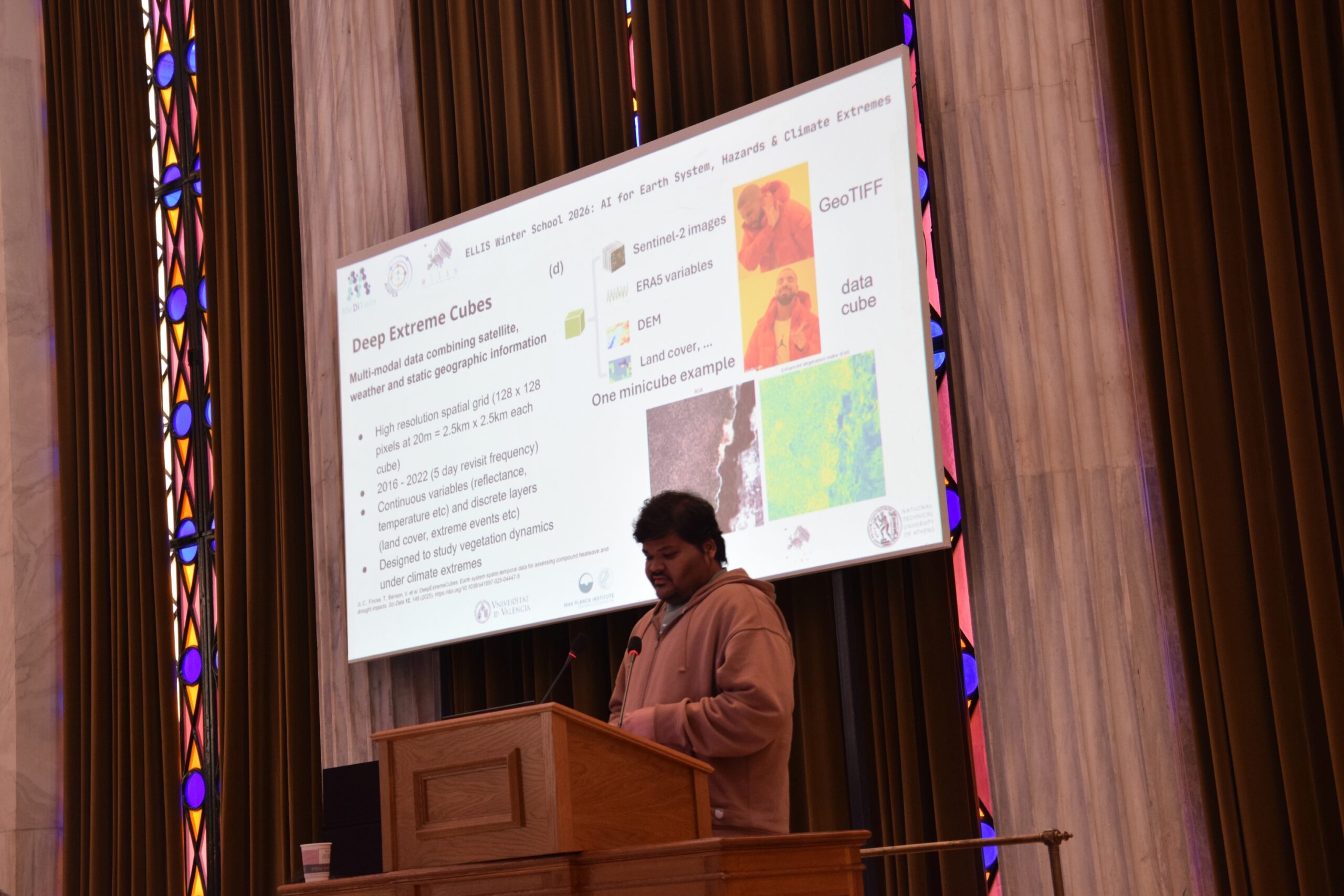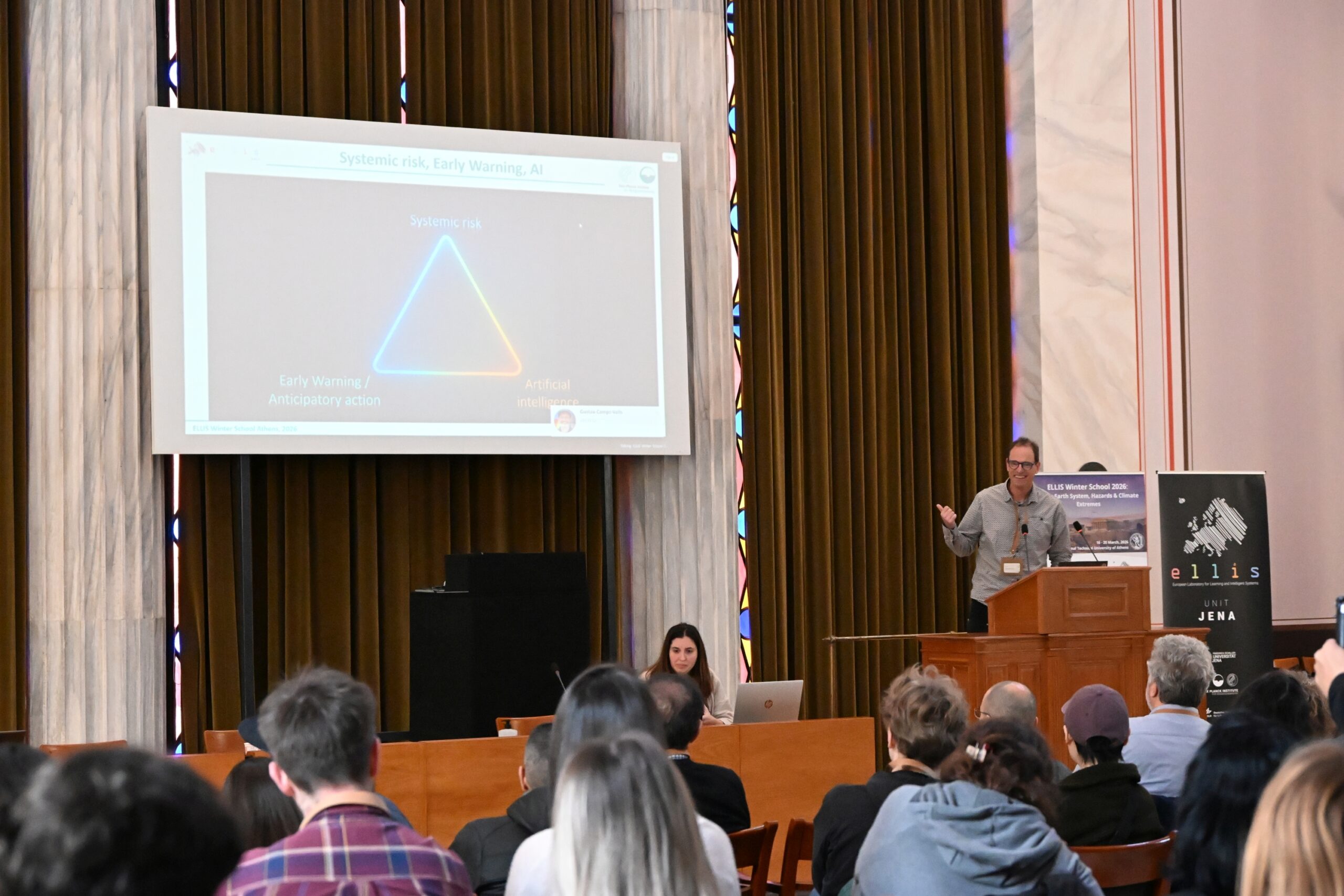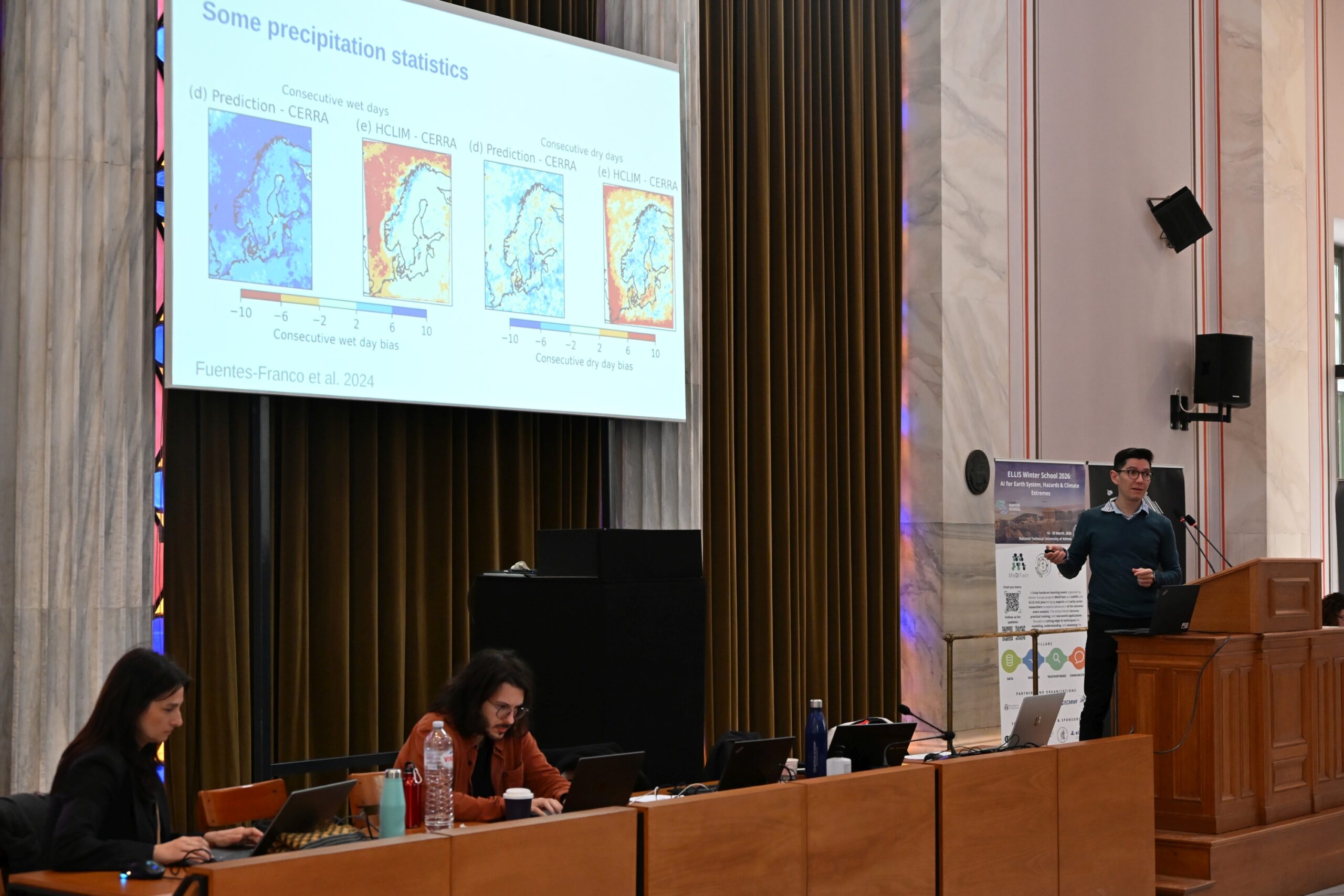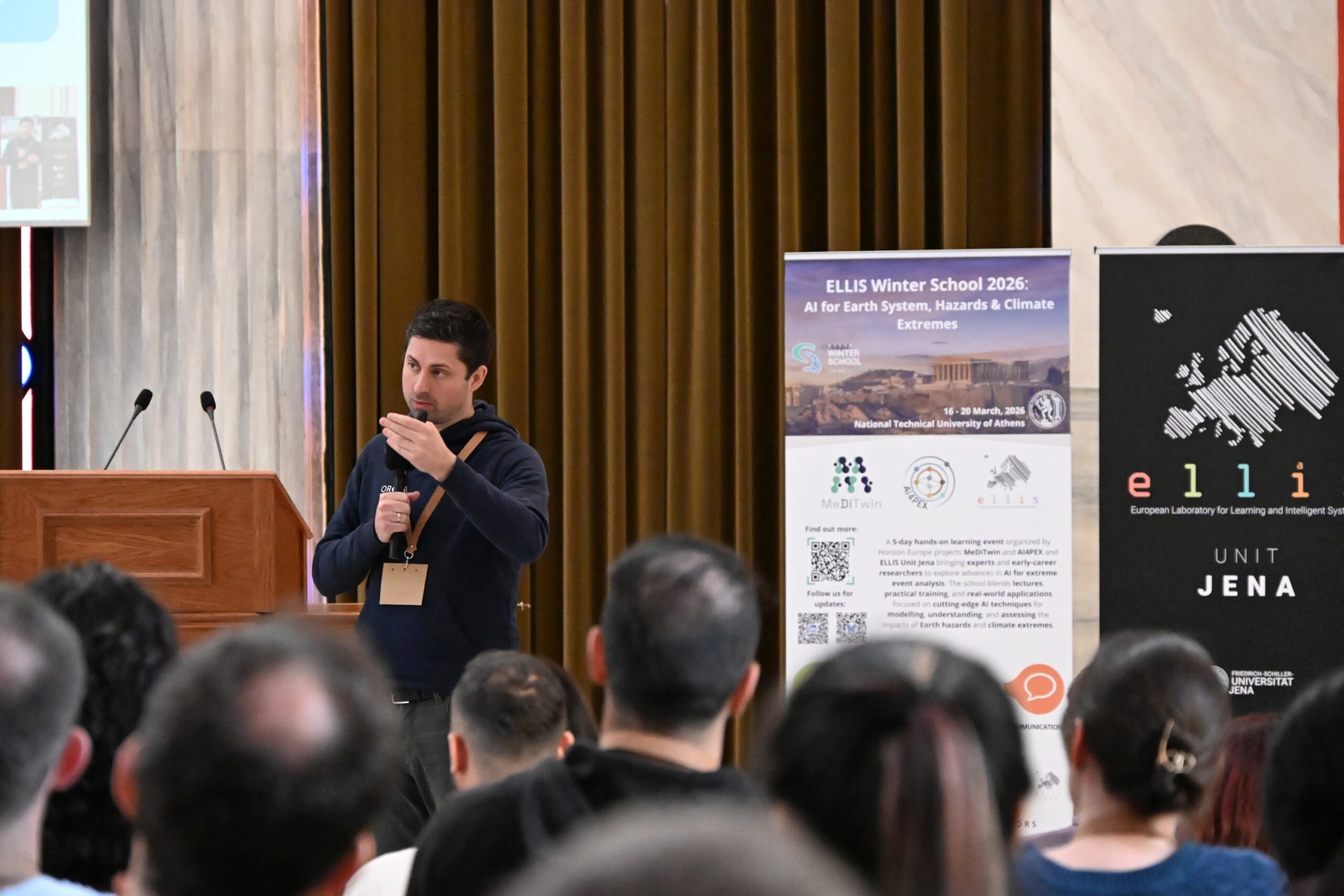 The 2026 ELLIS Winter School on “AI for Earth System, Hazards & Climate Extremes” brought together over 100 MSc, PhD, and postdoctoral researchers working at the intersection of artificial intelligence and Earth sciences. Over the course of an engaging week, participants explored the latest advances through keynote lectures, hands-on sessions, and collaborative project work—fostering a dynamic community of early-career researchers and sparking lasting collaborations across AI, Earth, and climate sciences. The program combined theoretical foundations with practical training and real-world applications. Participants engaged with cutting-edge AI methods to enhance the modelling, understanding, and impact assessment of extreme environmental events, effectively bridging fundamental research with operational and societal needs. The Winter School provided a unique opportunity for participants to deepen their expertise, collaborate across disciplines, and actively engage with a growing community shaping the future of AI for the Earth system.