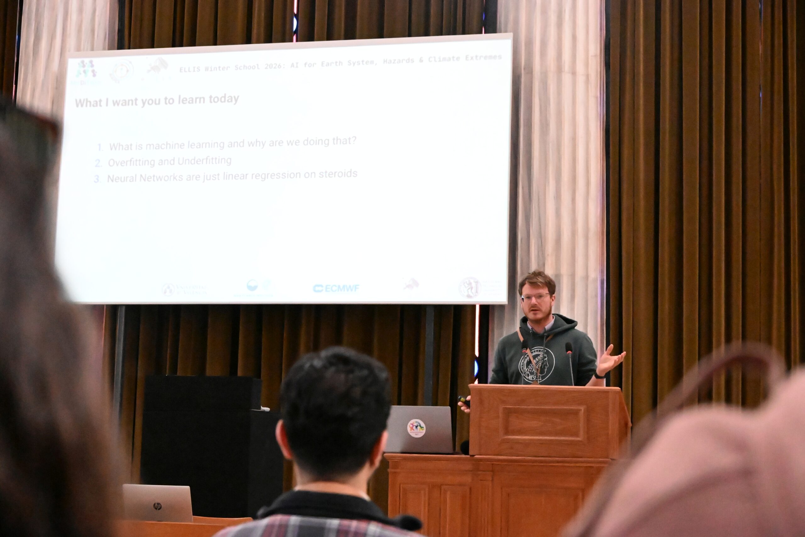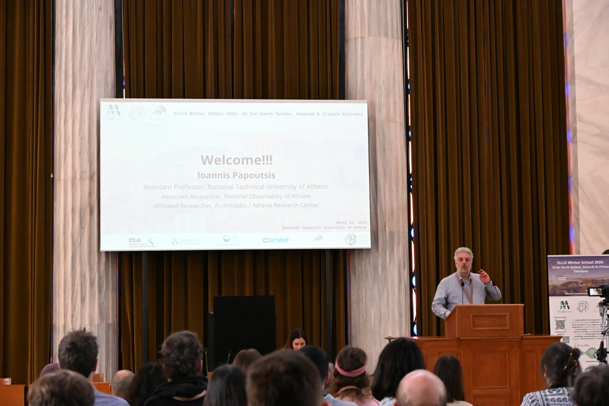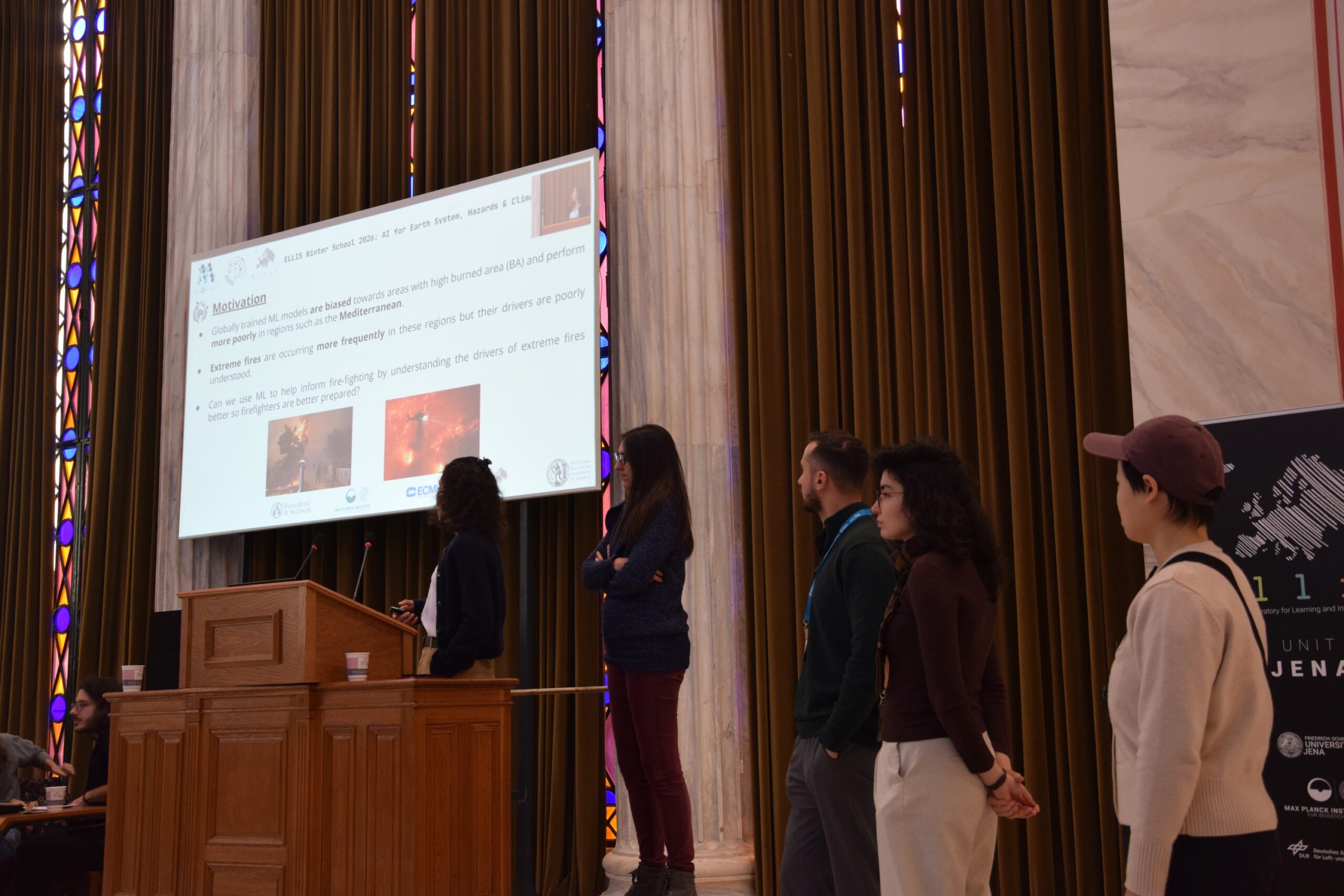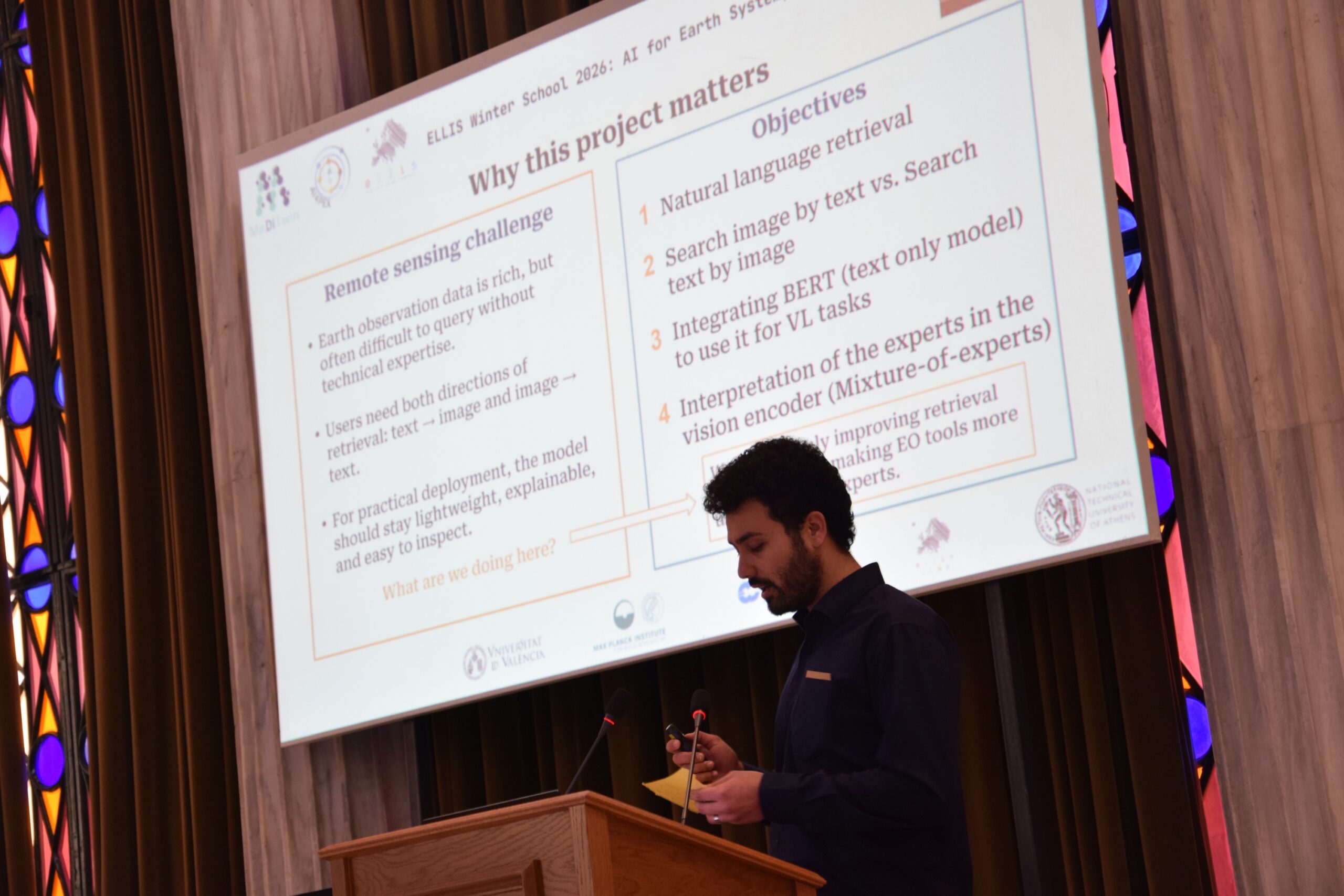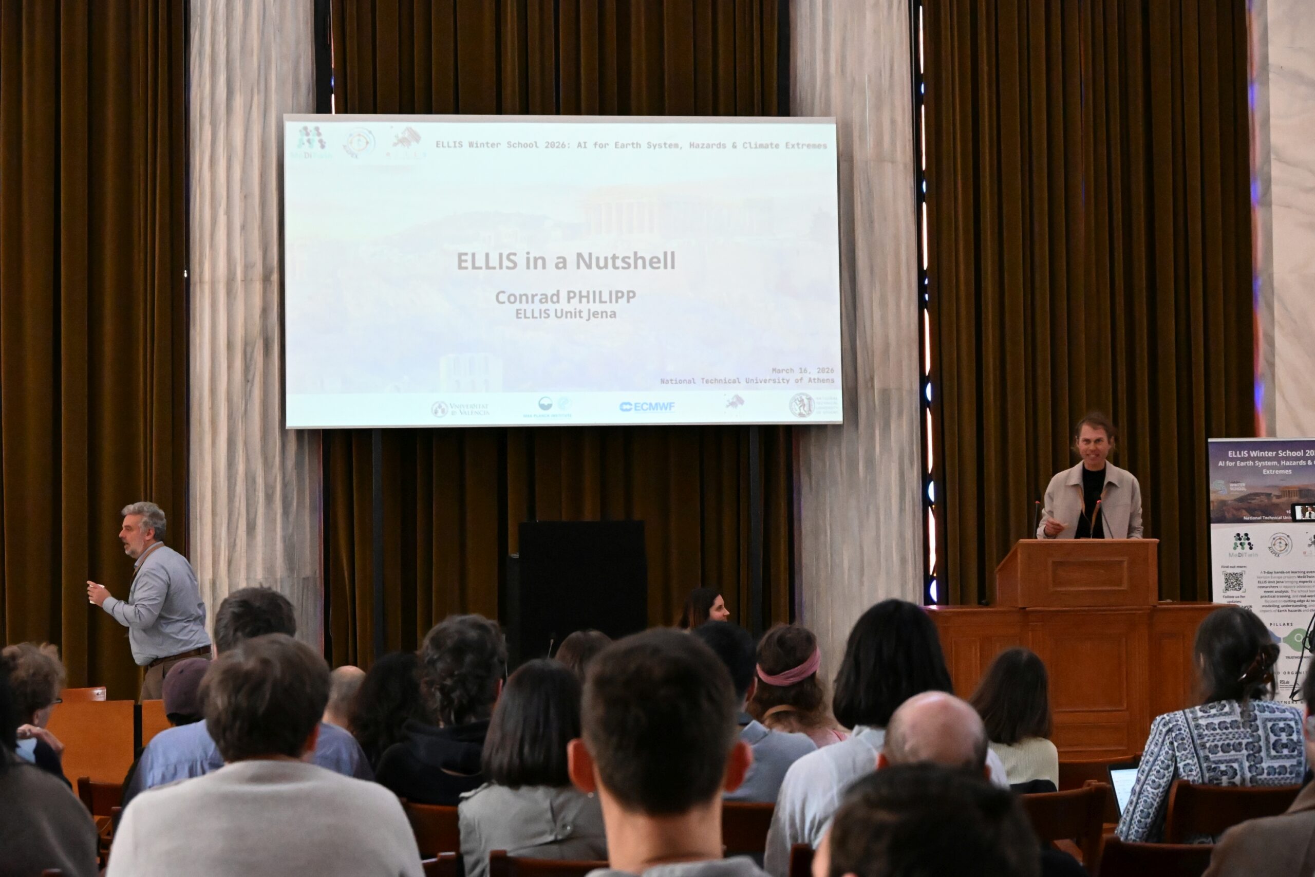 The 2026 ELLIS Winter School on “AI for Earth System, Hazards & Climate Extremes” brought together over 100 MSc, PhD, and postdoctoral researchers working at the intersection of artificial intelligence and Earth sciences. Over the course of an engaging week, participants explored the latest advances through keynote lectures, hands-on sessions, and collaborative project work—fostering a dynamic community of early-career researchers and sparking lasting collaborations across AI, Earth, and climate sciences. The program combined theoretical foundations with practical training and real-world applications. Participants engaged with cutting-edge AI methods to enhance the modelling, understanding, and impact assessment of extreme environmental events, effectively bridging fundamental research with operational and societal needs. The Winter School provided a unique opportunity for participants to deepen their expertise, collaborate across disciplines, and actively engage with a growing community shaping the future of AI for the Earth system.